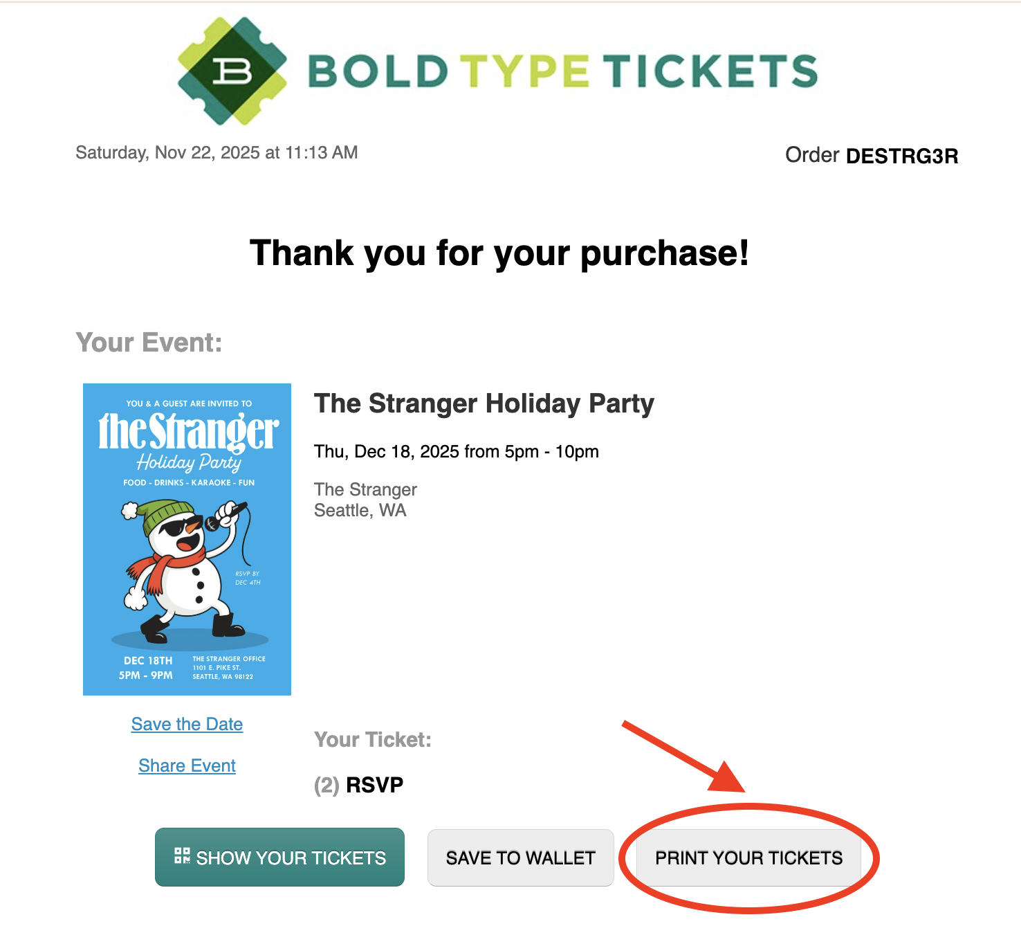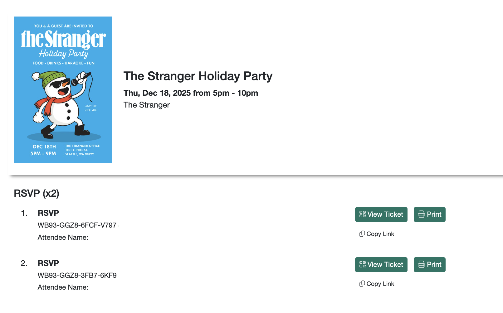 The following view is what you would see if you hit "View Ticket", the following is your ticket that you need to print to present at the venue.